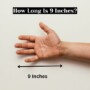 So your hand tells you roughly what 9 inches feels like. “How tall is 9 inches” is about your own hand’s span.